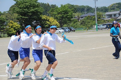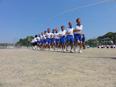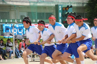 5/25(土)の栄中〜平成25年度栄川中学校体育祭が本日好天に恵まれ、実施されました。竹取に大玉など組み合わせた生徒会種目。各学年男女別の100m走。障害物に台風の目、ムカデとレクリエーション的要素が大きい各学年の学年種目。人数の減少でチーム編成を工夫して行った綱引き、全員リレー、長縄、選抜リレー。生徒の皆さんは本当によく活躍してくれました。