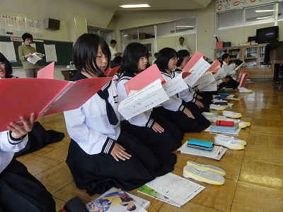 6/18(火)の栄中〜6/18(火)から3日間、保護者や地域の方々、先生による「朝の読み聞かせ」がスタートしました。普段は朝読書の時間で本を読んでいる時間ですが、今日からは読み聞かせとなります。紙芝居形式、絵本の形式など形態はさまざまですが、一生懸命の読み聞かせをしてくださる方々には本当に感謝申し上げます。また、生徒もとてもいい姿勢で聞くことができていて、素晴らしかったです。明日以降もいろいろなお話を聞くことができて、とても楽しみですね。