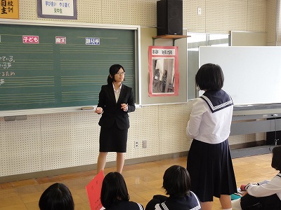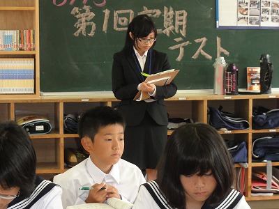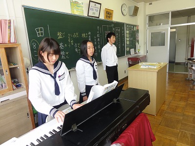 また、今日から本校しては3年ぶりとなる教育実習の先生が来て下さっています。音楽の杉山先生で、本校の卒業生でもあります。2週間という短い期間ですが、音楽の先生を目指して、がんばっている杉山先生と一緒に楽しく勉強していきましょう。