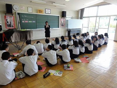 また、栄川中校区の幼小中一貫研修会の公開授業が3−Bでおこなわれました。高塚先生の英語の授業を多くの先生方が参観してくださいました。いつもより3割増し?でがんばる3年生の姿にどの先生も「素晴らしい」と賞賛してくださいました。本当に素晴らしいがんばりでした。ありがとうございました。