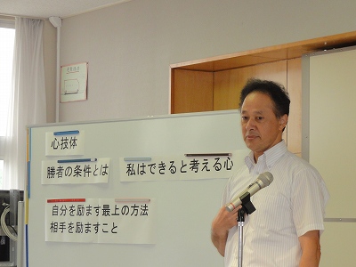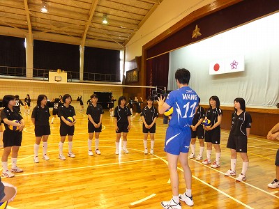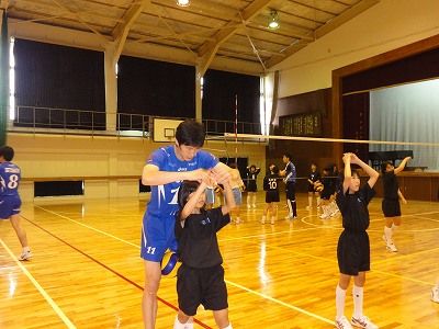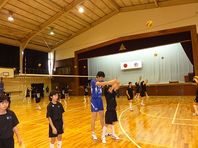 6/24(月)の栄中〜中体連を間近に控えた22日(土)、本校の体育館でバレーボールのトップアスリート講習会が開かれました。東レアローズの瀬戸口選手、王選手、李選手、山本マネージャーの4人が指導に来て下さいました。Vリーグで活躍する東レの選手はどんな感じかなと思い、体育館に入りましたが、とにかく「デカイ」。その身長には圧倒されました。中学生の女子選手では胸のマークあたりが頭でした。本校バレー部と大須賀中男女バレー部を指導して下さり、丁寧かつ熱心に教えて頂きました。本当にありがとうございました。教えて頂いたことを実践に生かし、大会では一つでも多く勝てるようにがんばりたいですね。