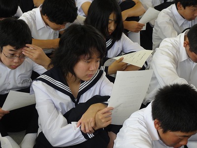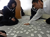そして、今日は毎年恒例の全校百人一首大会でした。今年から多目的室に会場を移しての実施でした。全校生徒が事前のクラス予選結果から5人前後の19のグループに分かれて、熱戦を繰り広げました。上位者で構成されたグループでは、多くの場合に上の句だけで「ハイッ」と札が取られていました。すごいなぁーと感心することしきりでした。約1時間の戦いの結果、優勝は3年生の山下さん、第2位は2年生の安達さんでした。おめでとうございます。素晴らしい行事なので、是非今後も続くといいですね。