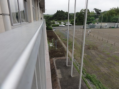 7月6日の栄中〜本校野球部は中体連小笠地区大会の1回戦で菊川西中に1−2で敗れました。2点を先行された最終回、今駒くんと松浦くんの連打で1点を返しましたが、反撃も及ばず、栄川中野球部の夏が終わりました。残念ではありますが、野球部の頑張りと皆様の応援・ご支援に感謝いたします。ありがとうございました。また、今日から校舎改修に関わる工事が本格的に始まりました。写真の左側が午前中、右側が15時頃の様子です。校舎の南側にあった樹木が全てなくなってしまいました。来年は梅もツツジも見られないかと思うと少しさびしい感じもしますが、耐震化のためなのでやむを得ません。月曜日の朝、ビックリしてくださいね。