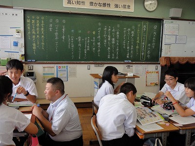 また、昨日(9/11)は静岡大学教育学部附属島田中学校に先生方が出向き、授業参観や授業に関する勉強会をさせてもらってきました。懐かしい藤原先生の授業も参観できました。附属島田中と言えば「4人での小集団学習」が特徴です。今回もたくさん見せてもらいました。附属島田中の先生と生徒の皆さん、素晴らしい授業をありがとうございました。