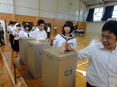 9/18(水)の栄中〜今日は後期生徒会役員立会演説会&選挙が行われました。会長候補に2年生の伊藤さん、副会長候補に1年生の川本さんと2年生の小原さんがそれぞれ立候補してくれました。あいさつや日常生活、授業の充実など学校生活をより良くしたり、体育祭や栄中祭を盛り上げたりといった生徒会活動への抱負を精一杯、話してくれました。1年生から3年生までの全校生徒が演説をとても真剣に聞くことができていてこちらも素晴らしかったです。10月15日から始まる後期の栄川中学校が2年生を中心に一層いい学校になるのではと予感させてくれた時間でした。