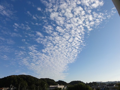 10/4(金)の栄中〜先日の朝、校舎の窓から北の空を撮影しました。まぁ、見事ないわし雲でした。秋を象徴する空ですから、暑かったり、涼しかったりと安定はしませんが、「天高く、馬肥ゆる秋」に近付いているようです。各クラスは来週の栄中祭に向けて、合唱練習が盛り上がっています。1Aは「手のひらをかざして」、2Aは「時を越えて」、3Aは「信じる」、3Bは「君と見た海」です。残すところ、あと1週間。合唱実行委員を中心に頑張りましょう。