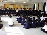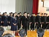 3/7(金)の栄中〜昨日で高校入試も一段落。3年生は学年時間割での活動が始まりました。卒業式の練習が始まり、今年もいよいよファイナルに向かって、最後の活動に入りました。また、午後には恒例の3年生を送る会が開かれました。今年の入場は3年生がステージ上でポーズを決める形式で、3年生はそれぞれに工夫して入場してくれました。レクやスライド、お世話になった先生からのメッセージなどを楽しみました。最後に、1.2年生から大地讃頌、3年生から3月9日と合唱の交換が行われました。とてもほのぼのとしたあたたかい3送会ができました。