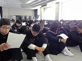 1/22(水)の栄中〜昨日から今年度、最後の読み聞かせが始まりました。21日から23日までの3日間です。これまで年3回の読み聞かせをボランティアの皆さんにお願いしてきました。表情豊かで上手な読み聞かせで生徒ばかりか、先生方もよい気持ちにさせてもらいました。ありがとうございます。普段の読書とはひと味違った本のよさに気付けました本当にありがとうございました。また、来年度もよろしくお願いいたします。