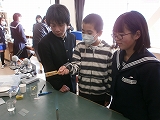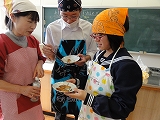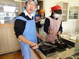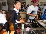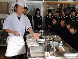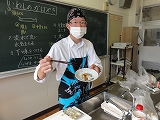 12/4(水)の栄中〜今日は授業を変更して、3・4時間目に2年生の調理実習が行われました。メニューは、「あじの塩焼き」と「いわしのかばやき」でした。1クラスが38人と大所帯の2年生だけに、実習が始まると上を下への大騒ぎ。宮崎先生を呼ぶ「先生ー、これでいいだ?」「こんななっちゃったけんいいだぁ」と遠州弁が飛び交い、大騒動でした。それでもしだいに焼けてくると、一心不乱に食べ始め、調理室は静かになりました。そして、片付けは片付けで大騒ぎ。なんとも楽しい調理実習でした。    |