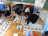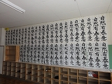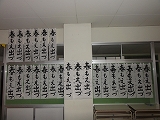 また、学習室で「栄中書き初め展」が行われています。壁一面に全校生徒の書き初めが並んでいる様子は圧巻です。いろいろな作品が見られて、とてもいい感じです。