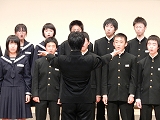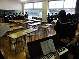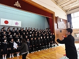 今日は鶴見先生が来てくださり、キラリふれあいコンサートに出演する3年生に最後のレッスンをしてくださいました。相変わらず、エネルギッシュで情熱あふれるご指導で、3年生の合唱があっという間にグレードアップしていきました。本当にありがとうございしました。昼休みは本番に向けて恒例の校内コンサートでした。1.2年生もほぼ全員見に来てくれました。3年生の一生懸命で上手な合唱に拍手喝采。「合唱の素晴らしい栄中」の看板が今年も引き継がれた瞬間でした。