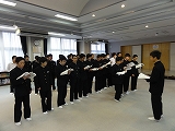12/19(木)の栄中〜生徒会本部の企画で、今日の帰りの会の始めの時間に全校による合唱練習がありました。「大地讃頌」をソプラノ・アルト・テノール・バスのパート毎に集まって、短時間でしたが一斉に練習をしました。この曲は卒業式の全校合唱で歌うことになっていますので、今のうちから練習を積み重ねています。どのパートもリーダーを中心にしっかり練習に取り組めていました。正直な話、中学校でこれだけしっかり自分たちだけで練習ができる上に3学年が混合になって練習ができる学校は数少ないと思います。こんなことをサラッとやってしまう栄中生には本当に驚かされます。素晴らしいことですね。