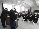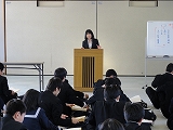 1/17(金)の栄中〜昨日、本校の入学生説明会が行われました。東山口小と日坂小、上内田小から38人の6年生が来校してくれました。初めに生徒会の伊藤さんと小原さんから中学校生活についての説明を聞きました。続いて、4クラスに分かれて中学生と一緒に体験授業に参加しました。どのクラスも体験型の授業で楽しく取り組んでいました。その後、全体で細かな説明を聞き、最後に部活動見学をして帰りました。昨年が23人だったので、38人はとても多く感じました。4月からは栄川中の一員として、一緒にがんばりましょう。