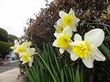 3/25(火)の栄中〜春休みに入って4日が経過しました。夏の校舎改修の時、廊下のシート張り替えをしてもらったのですが、階段や多目的室前など一部は古い緑色のシートのままとなっていました。今回、未改修部分の工事が行われています。4月にはクリーム色で統一されたきれいな廊下と階段になる予定です。また、校庭の桜が少しずつ花開いています。風は強いものの外気温が20℃以上になり、一気につぼみがふくらみ、ちらほら花が咲き始めました。スイセンは今が最盛期でしょうか。28日には満開の桜の下、離任式となりそうです。