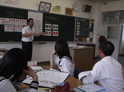 7/4(木)の栄中〜昨日(7/3)に岡田先生が3年B組で研究授業をしました。先生の授業力を高めるための一貫で、今年は全員が1回は先生方に授業を見てもらうことになっています。先日の後藤先生に続いて、今回は岡田先生でした。公民の「対立と合意・効率と公正」に関する授業で、マンションのペット問題を解決する過程で対立を合意に導くためのルール作りを通じて、効率と公正という見方や考え方を身に付けるという授業でした。みんなでいろいろな角度から考えることができていました。