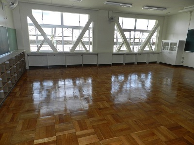 8/27(火)の栄中〜本校の7/20から8/29までの夏休みもあとわずかとなりました。耐震工事も最終段階で、各種の検査と仕上げに入っています。写真の左上と右上を比べて、気付くことはないでしょうか。実は廊下のシートが新しくなりました。どちらに変化したのか、8/30(金)に確認してみてください。下の写真は3年生の教室です。とにかくピカピカしています。白い壁や棚がキラキラです。さて、荷物を戻して、通常の学校活動ができるようにこれからが大切です。がんばりましょう。