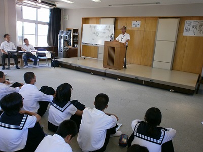 10/24(木)の栄中〜今日は「ようこそ先輩、先輩から学ぶ」と題した講演会が行われました。恒例となっているこの講演会ですが、今年は「世界農業遺産に想う」というタイトルで、本校の卒業生でもあり、東山地区在住の杉浦俊治さんと市内在住の太田峰夫さんに講演をお願いしました。5月に世界農業遺産登録となった「茶草場農法」に関するお話で、この農法の素晴らしさや伝統を受け継ぐことの大切さなどについて、1時間にわたってお話をいただきました。また、多くの地域の方々にもご参観いただきました。お忙しい中、本当にありがとうございしました。