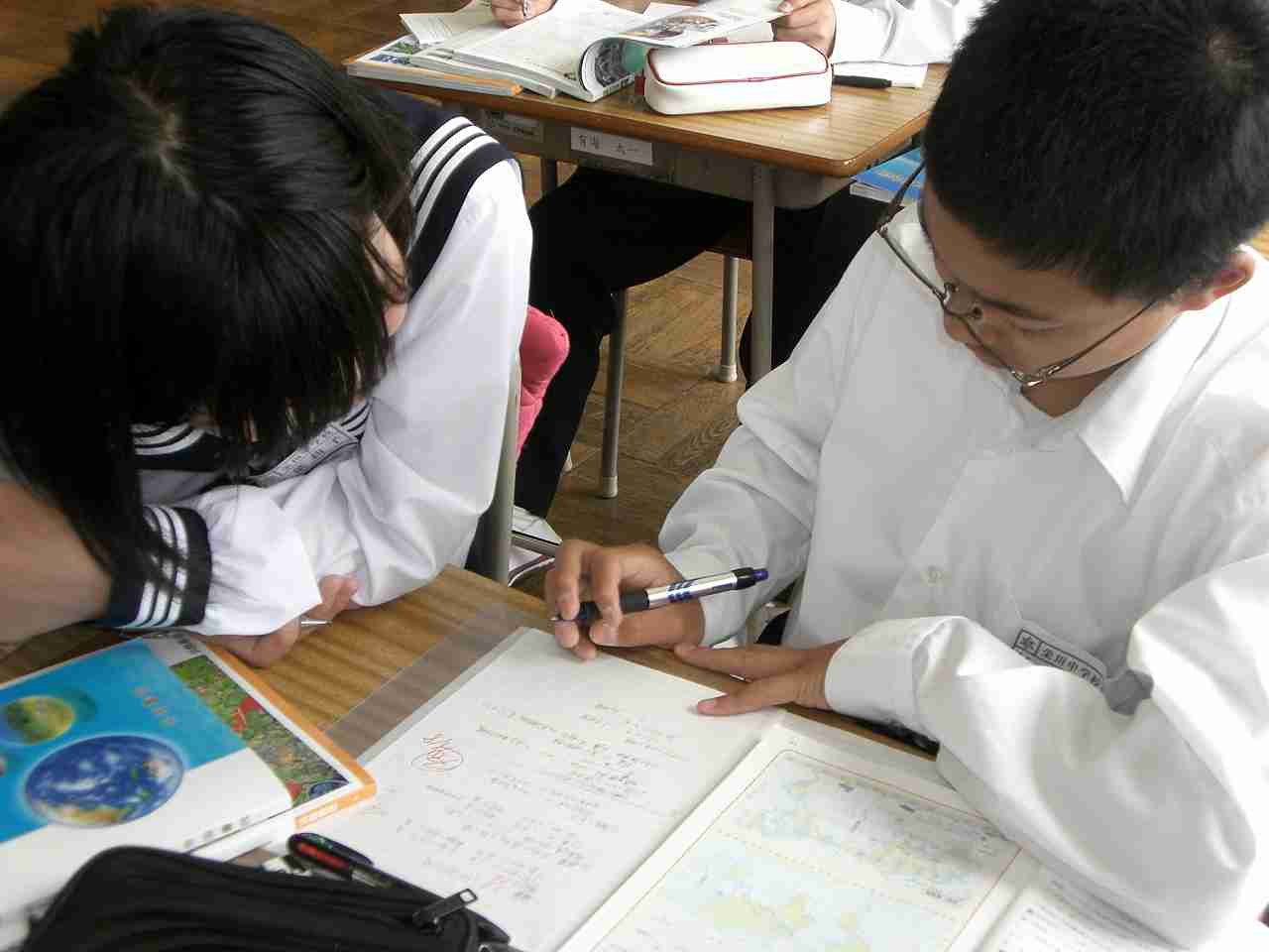 世界と日本の標準時刻はどこを通っているのかを確認した後,日本と世界のいくつかの都市との時差について,友達と相談しながら考えました。(1年)